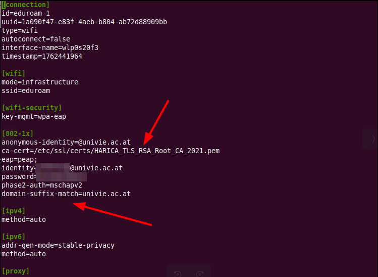 Like a number of times before, here’s a quick note how to setup Eduroam in a secure way, this time for Ubuntu 22.04. My example is for a University of Vienna student, parameters for other institutions might differ slightly. And like in previous Ubuntu versions, one input field is missing in the GUI configuration screen and perhaps thus also left out in the official documentation of the university.
