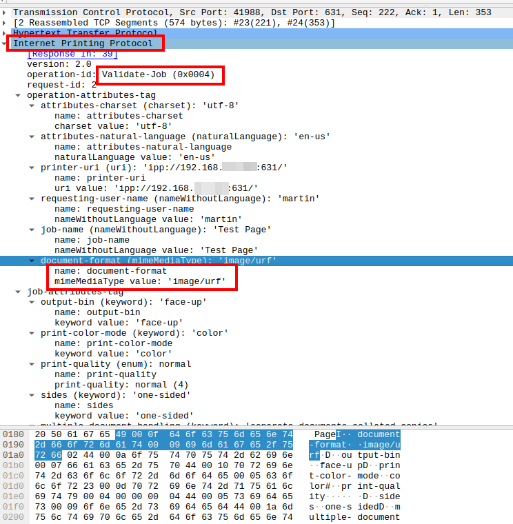 The main building blocks are Multicast DNS (mDNS) to find printers in the local network and the Internet Printing Protocol (IPP), which is an http based protocol to get printer attributes and to send print jobs. There’s IPP, which sends information in the clear, and IPPS for encrypted communication with the printer. By default, IPPS is used, but Linux allows to easily configure a printer manually with the unencrypted version so it’s easier to trace with Wireshark.